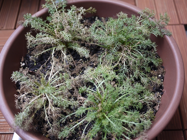 ところで、去年ヘチマを植えてたプランターに潜んでいたコガネムシの幼虫(大量・ムッチムチ)なのですけれども、農薬を買ってきたまではいいのざんすが、結局怖くて撒けず、何も見なかったことにして上から残ってたコスモスの種をまいた・・・・・・・・のでした。