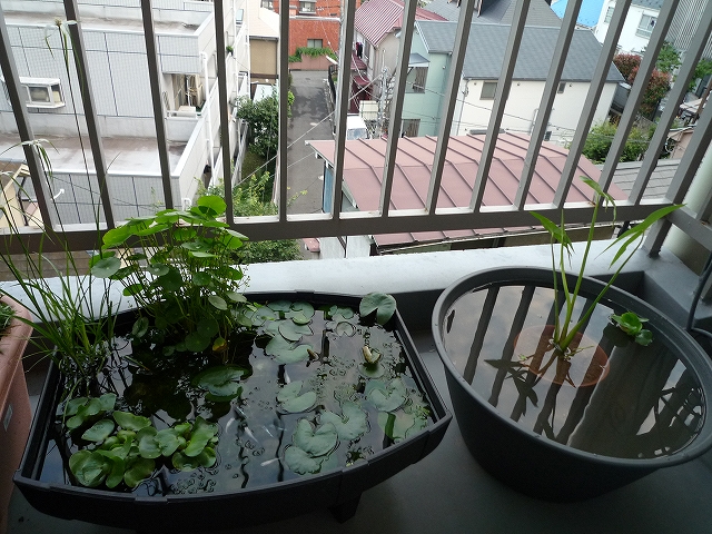 ほんとうは陶器の睡蓮鉢が欲しいけど、だいたい3年以内に終わる自分の趣味を考えると捨てやすいプラッチックが一番。