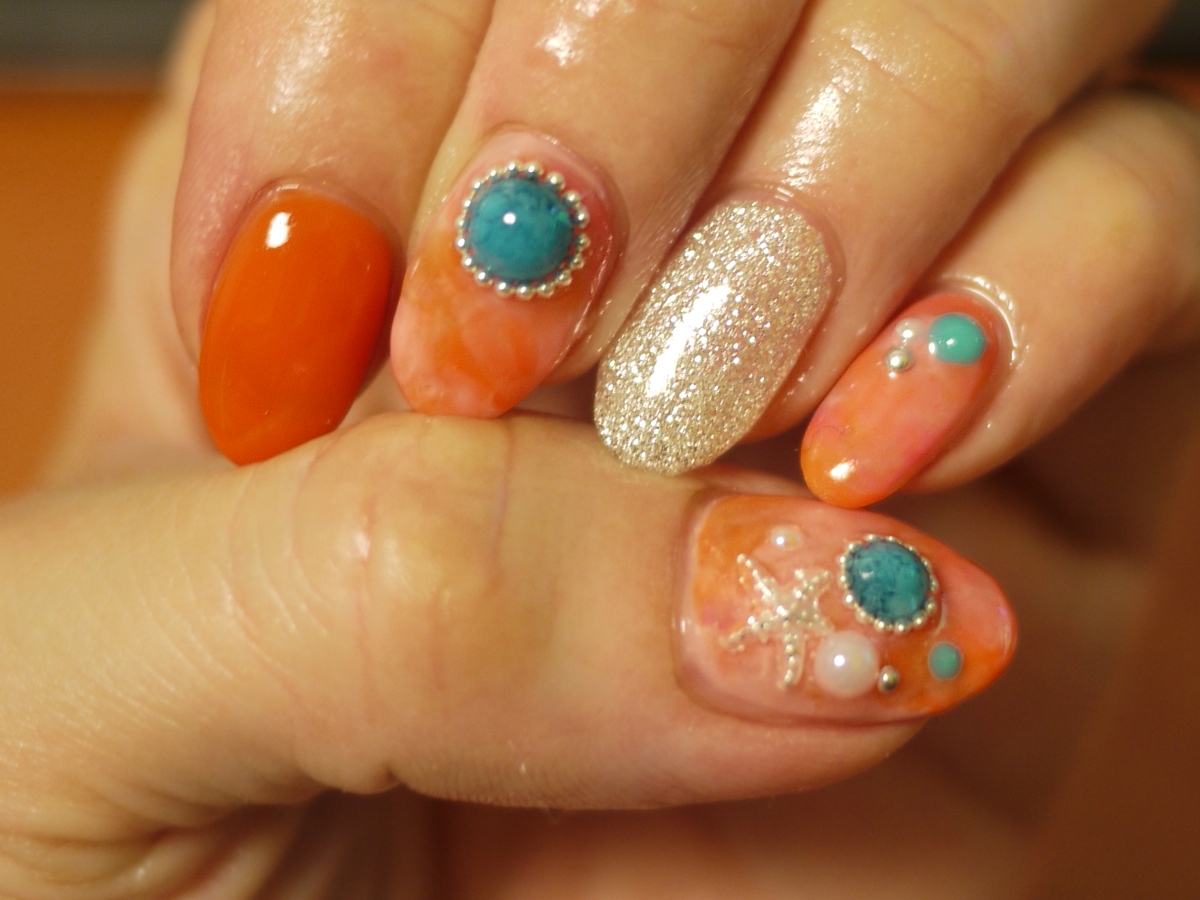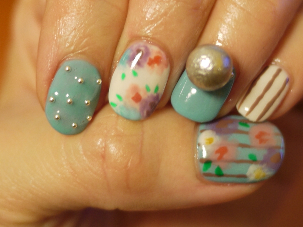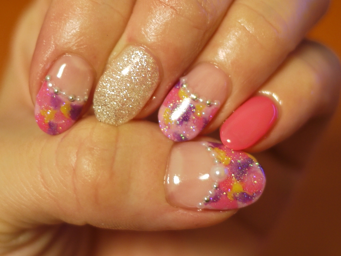 長さ出しにはまる。ラインストーン埋め込みマルチネイル。