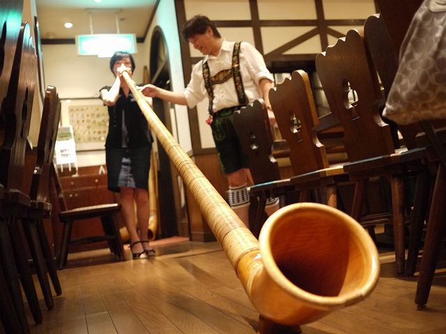 アルペンホルン~!アルプホル~~~ン!!とあっちこっちで騒いでいたら、同じ団の女の子が、アルプホルンを吹くことができるミュージックレストランに誘ってくれました