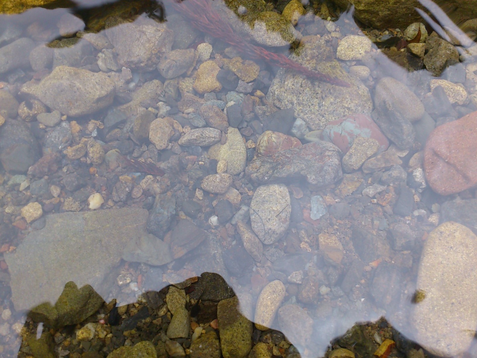 ハヤの稚魚。分かるかな・・・白い石のとこ・・・あれ?違った・・・?もう分からん。