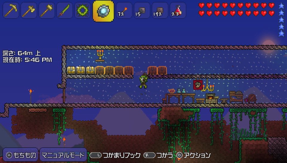 センスのいい家作りたいけど、全マップ掘り進めたいし、ボスも倒したいし、あうあう。