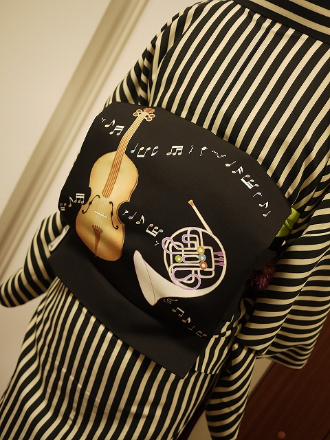 道行く奥様に、「あらあら素敵な帯ねぇ~、ギターと・・・・・何かしら?」って言われたよ。
