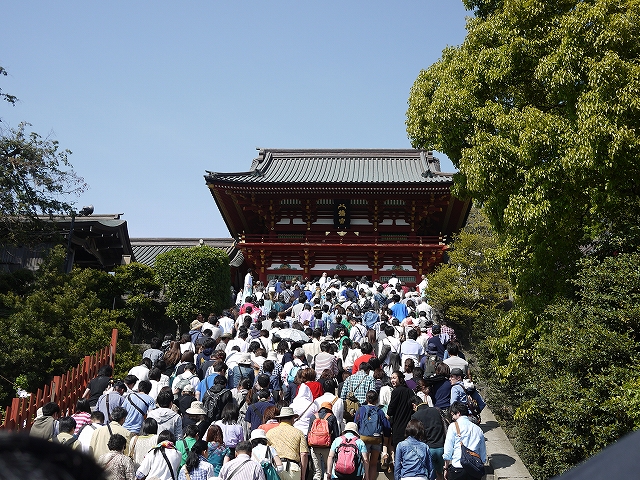 そこに行くまでも、そこからも、ず~ら~~と連なる人の列にしたがって、ぽくぽく歩いて鶴岡八幡宮に。