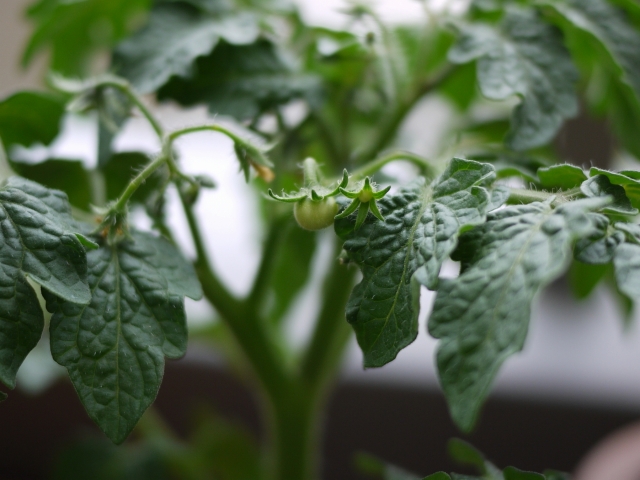 ローズマリーの横にミニトマト(間引きで諦めきれなかったミニトマトを瞬間、空いていたローズマリーの横に植えてしまう)