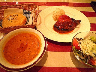 トルコのパンにレンズ豆のスープ、サラダ、バターピラフ、それと日替わり一品。