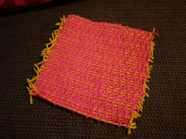 やっぱり今やっても自分の頭脳では一番簡単な織り方しか理解できないので、手芸が得意な妹に来てもらって一緒に織りましたとさ。