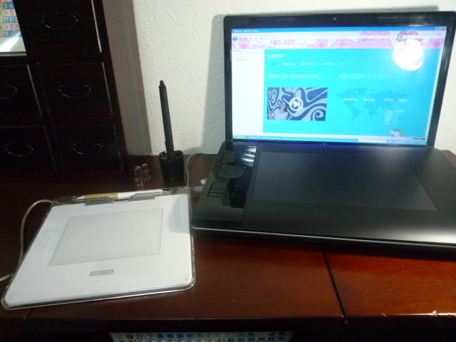 今まで使ってたタブレット(横の白)ちゃん、比べるとちっさいな~。