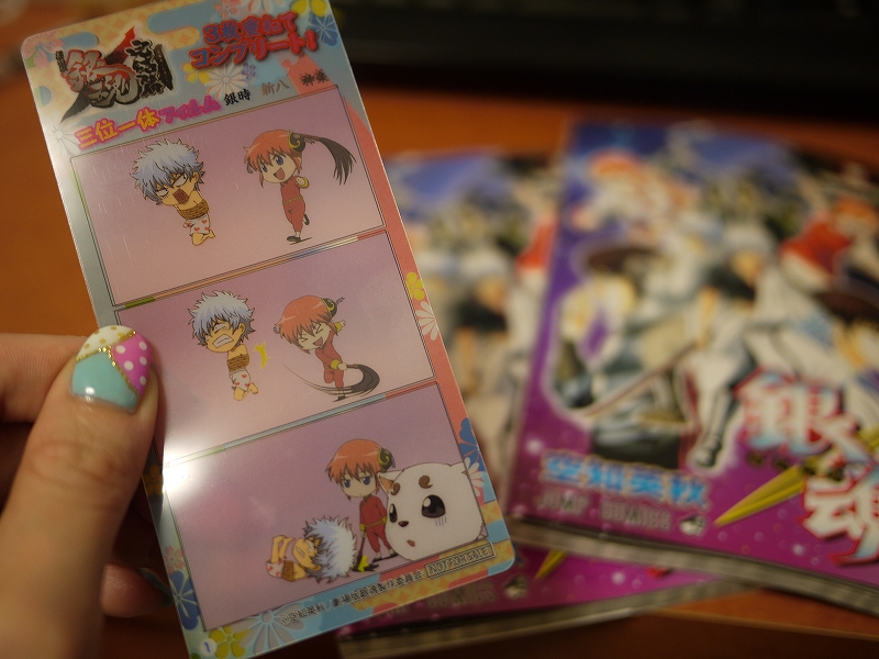 昨日の分と今日の分と、銀魂第零巻2冊、三位一体フィルムも銀さんと神楽で2枚もらっちゃった。新八があれば揃うけど、どうしましょ。