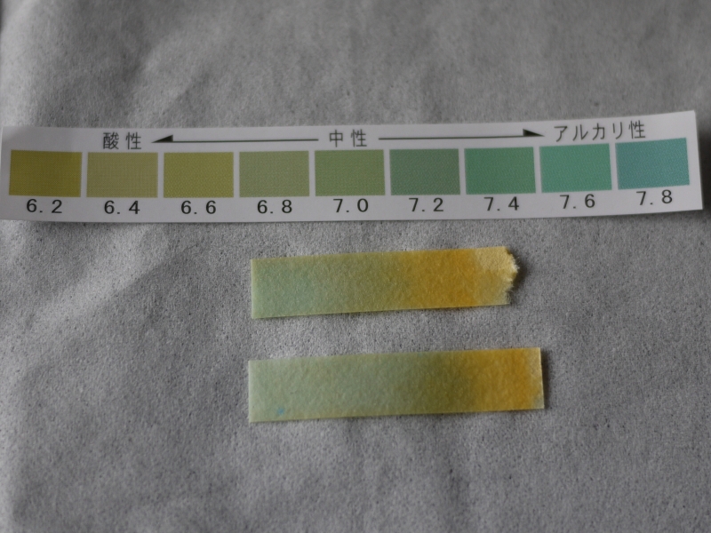メダカにもタニシにもアルカリ性の水がいいというけど、どうも酸性寄りみたい。