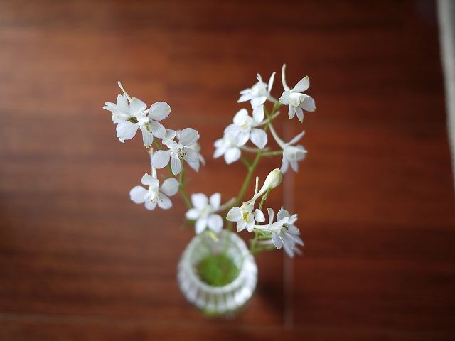 花の直径は2.5cmぐらい。白に見えるけどほんのり紫っぽくもある。