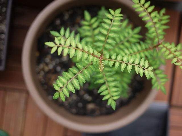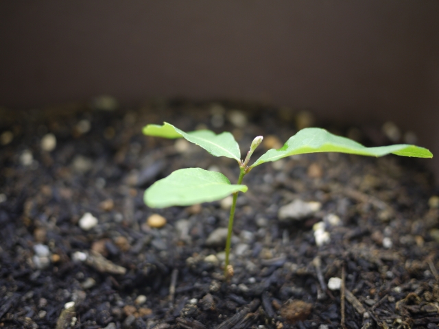 恐る恐る植え替えた山椒(枯れやすいらしい)と、軽井沢で拾ってきたドングリ