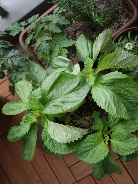種から植えたカモミールにシソ。