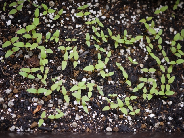 こないだ種まいて発芽したケイトウ。いっぱい間引かねば・・ヒヒヒ・・