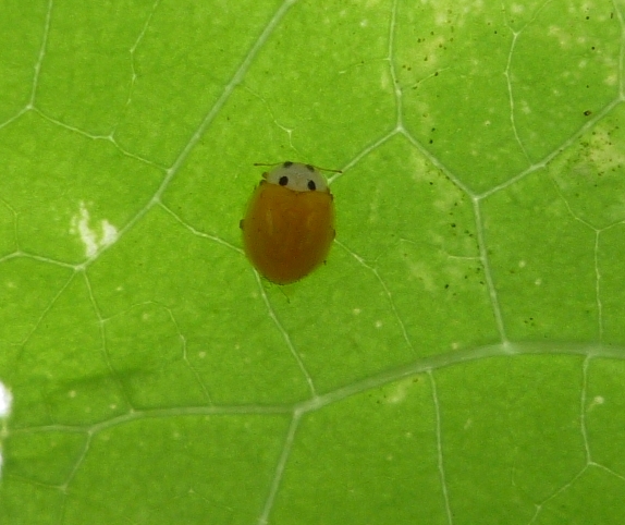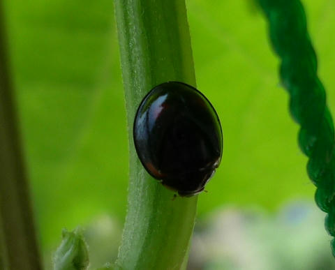 写真撮ったときは幼虫かと思ってたけど、画面で見ると成虫で、ググったところキイロテントウだった。