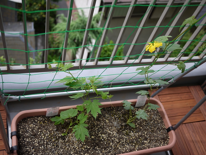 ゴーヤのゴーヤンとへちまのヘンリエッタを植えてから、毎朝日光の当たり具合が気になってしょーがありんせん。