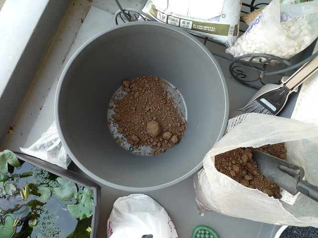 ほんとうは陶器の睡蓮鉢が欲しいけど、だいたい3年以内に終わる自分の趣味を考えると捨てやすいプラッチックが一番。
