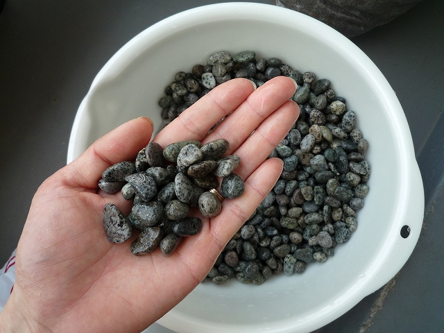 上からウズラ石を敷きまして、、
