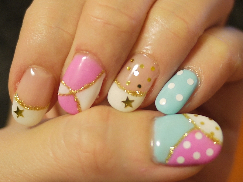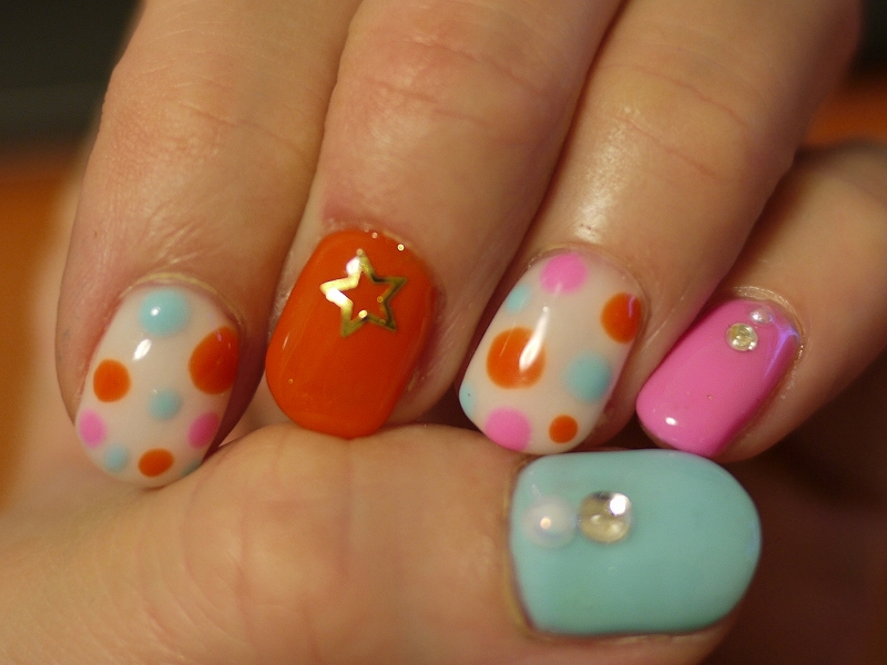 マルチカラー水玉ネイル♪今年はこの3色が好きじゃったのぅ。