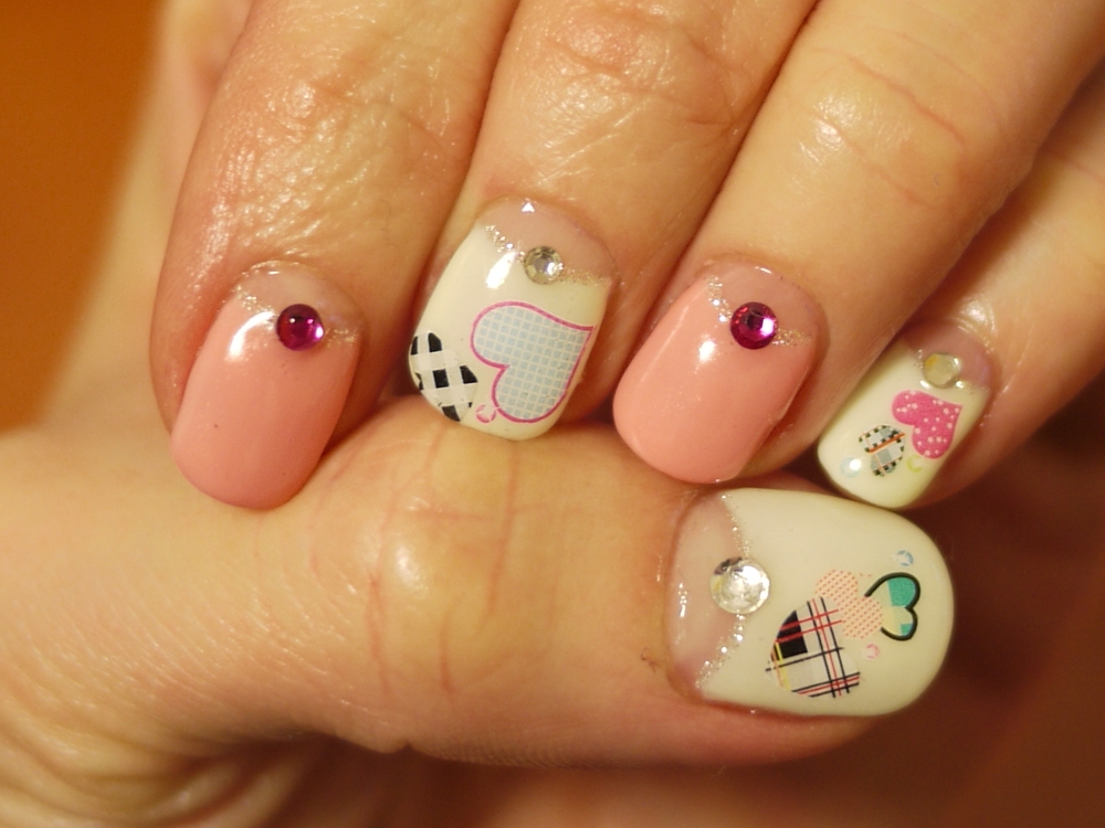 ウォーターシールでハートemojiくっつけただけのシンプルネイル。