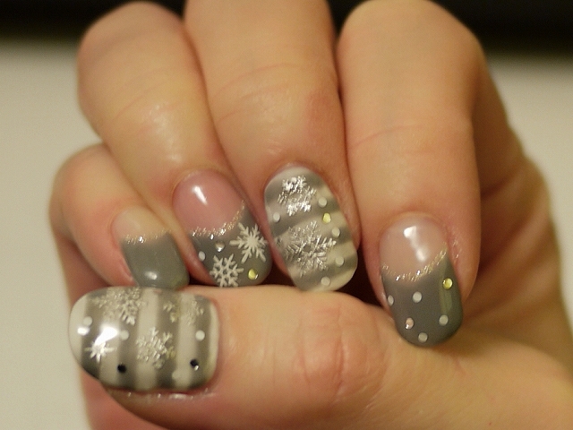 ボーダー&水玉&雪ネイル。シンプルにモノトーン。