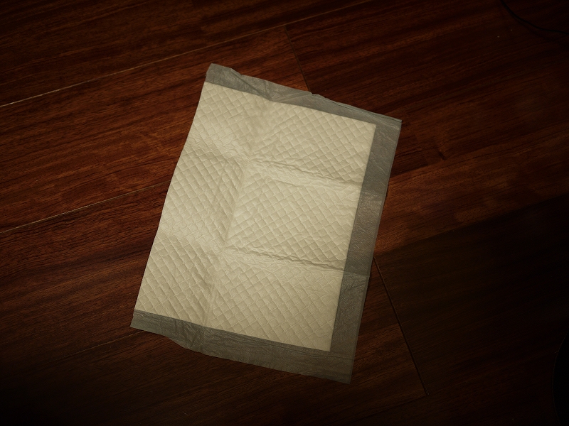 この吸水シート、今までは100円ショップで買った大判の吸水シートを切って使ってたけど、ペットのおしっこシートの方がいいと聞いて何も考えずに通販で注文したら・・