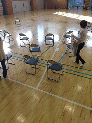 体育館も、ナチュラルな木とオサレブルーの組み合わせで、きれい・・