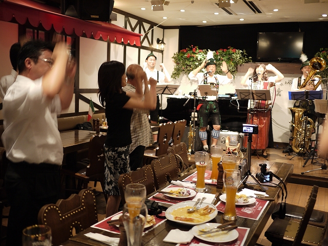 お客さんもディアルンドル(ドイツの民族衣装)なぞ着こんでいて、雰囲気あります。