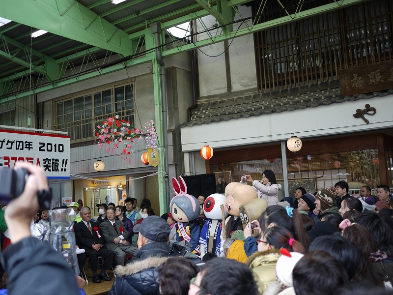 まあ普通に境港の水木しげるロード。12月30日のこの日は水木しげる記念館が無料開放ということで、何やら催し物がございました。割とすごい人出。