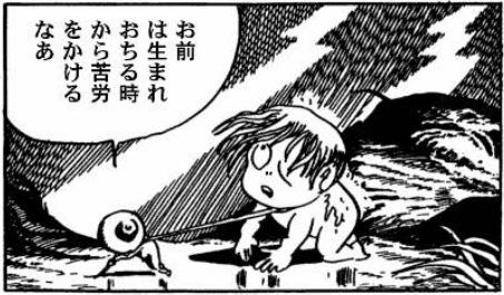 生まれたての鬼太郎とオヤジは水木しげる記念館の前にて。