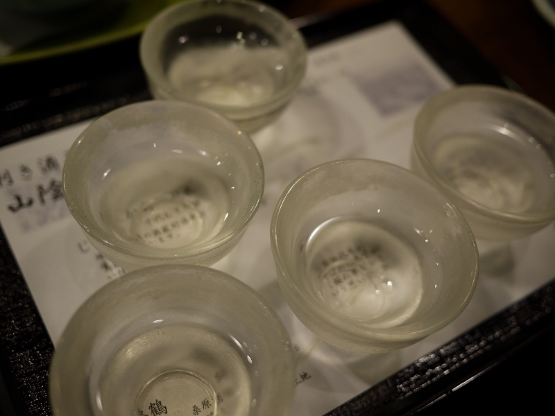 旅行先で居酒屋行ったら絶対頼む利き酒セット。境港の千代むすび酒造のフルーティなお酒がよかったす。