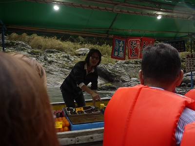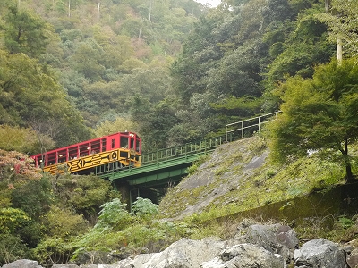 トロッコ電車で嵐山に登って、保津川川下りに参加。