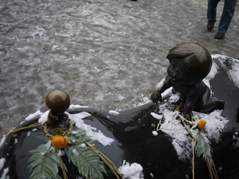 おまけにお正月仕様ですべてのブロンズ像にミカンとしめ縄が・・・いらん!