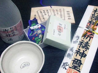 なんて呼ぶんだろ。で、もらったお払いグッズ。