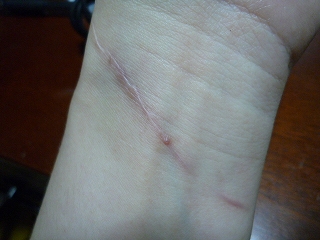 3月にずっぱり切った腕。