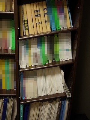 ニッセンの安い本棚買ったから、横棚は引っかけてるだけで止まってないんだよね~。