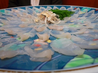 社長が普通の刺しではなく、特上とらふぐ刺しを食べたいとおっしゃりましたことで、と・く・じょ・うーーー!!