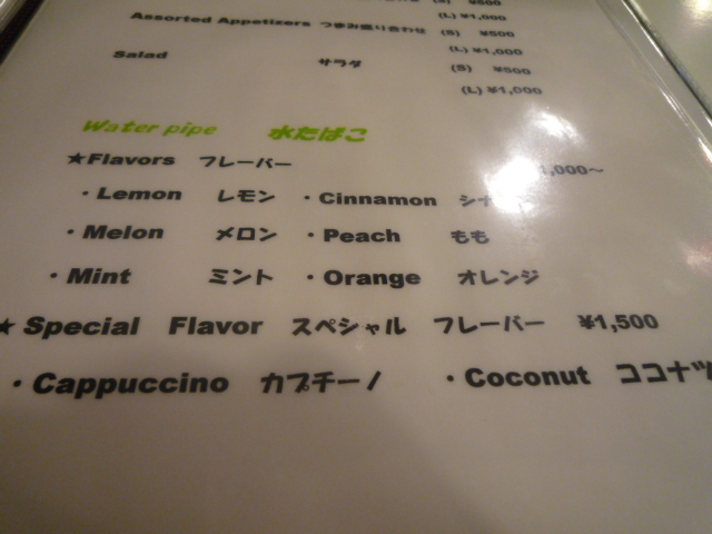 メニューに懐かしの水タバコが!