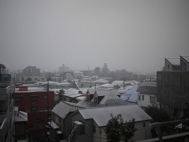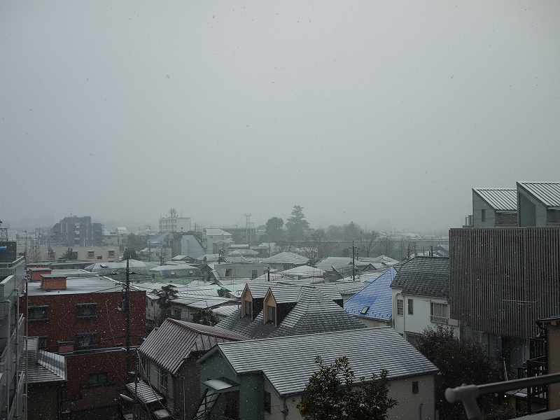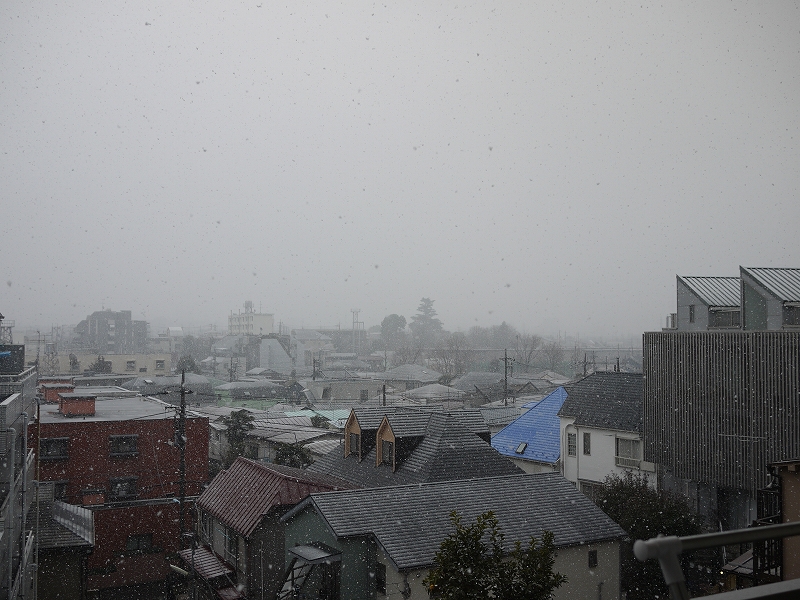 今日はめずらしく東京で雪が降ると言うので11時から定点観測。
