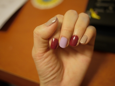 ジェルより楽~・・・と思っていたけど、洗い物しただけで先端がちょっとはがれたりしたので、やっぱりジェルのほうが楽なのかもしれない。