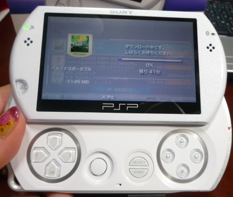 この直前に、おまけでついてたDLソフトの「バイトヘル2000」をパソコン経由でDLしたときはすぐ終わったのに、ペルソナ3を直でPSPでDLすると30分以上かかる・・あうあう。