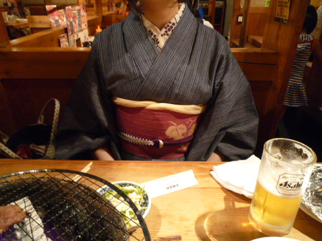 着物で焼肉屋。