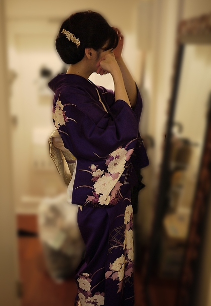 今回は過去の結婚式出席から、着物の色は真紫、というかど紫を選択。