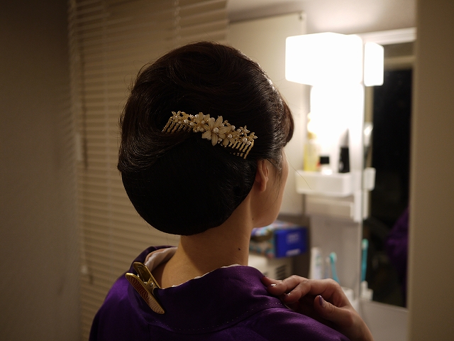 襟足にヘアピース団子を足して、イメージは
