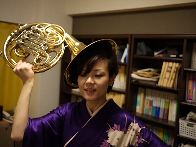 酔っぱらって帰ってきて、ちょうど趣味のホルンと着物なので撮影をしたところ。