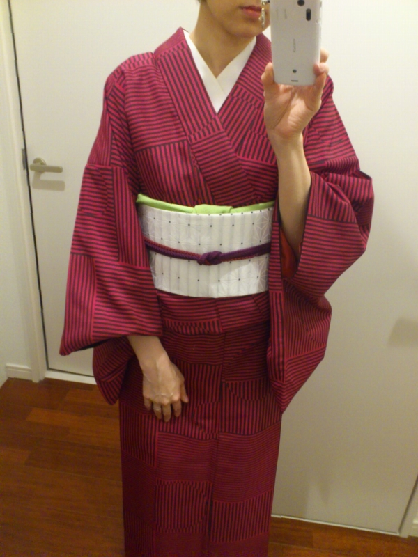 くるりの通販で安かったポリの着物(整うのichimatsu)にポリの帯・・・これでいーの!