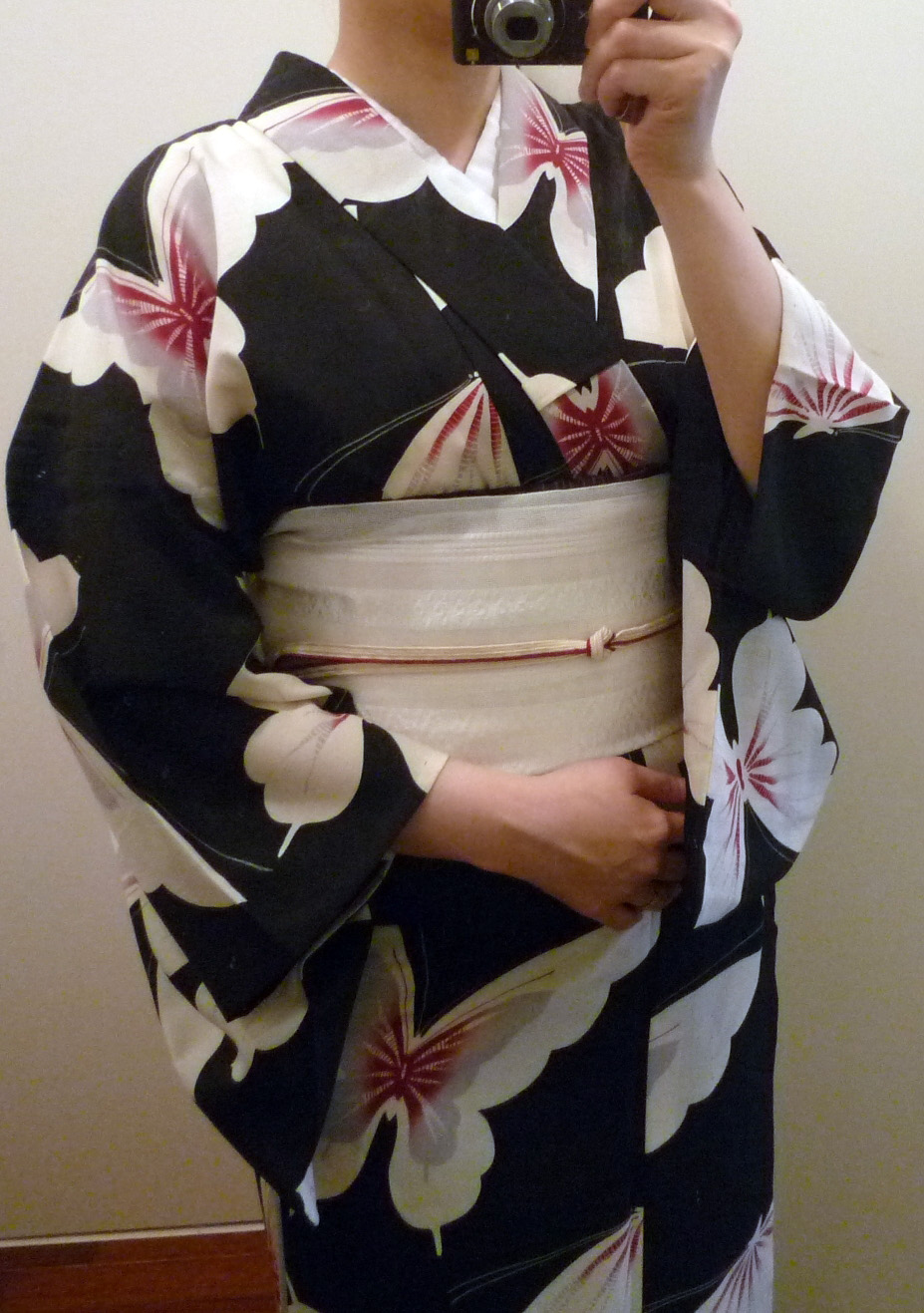 この写真は下に長襦袢つけてるけど、当日は襦袢なし、浴衣に白い博多帯、レース足袋を合わせますた。