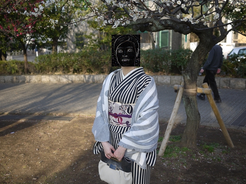 誰にも頼まれてもいないけど、着物で行きました。映りが悪い時はこうやってごまかすべし。