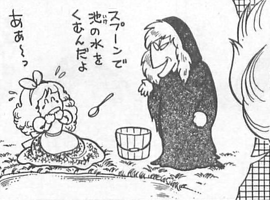 「スプーンで池の水をくむんだよ!」