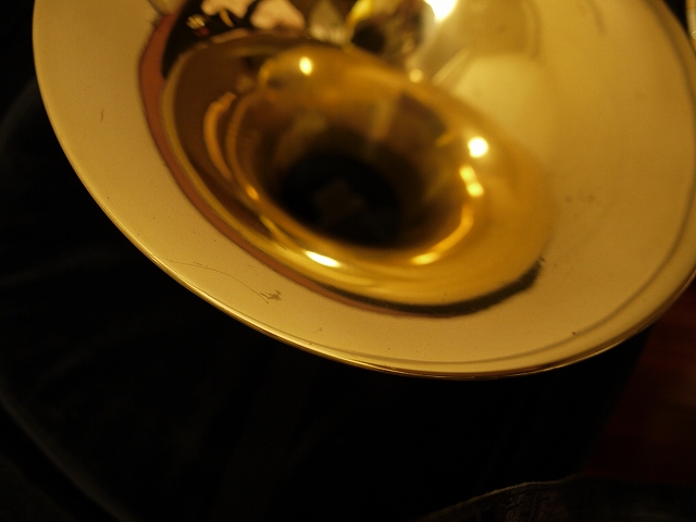 この楽器を修理している間に、同じ楽団の人にホルンを貸して頂いてたんだけど、その楽器がこの秋に買ったばかりのつるんつるん新品ホルン。
